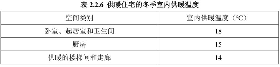 2.2.6 設(shè)置集中供暖系統(tǒng)的住宅,冬季室內(nèi)供暖溫度不應(yīng)低于表 2.2.6 的規(guī)定。